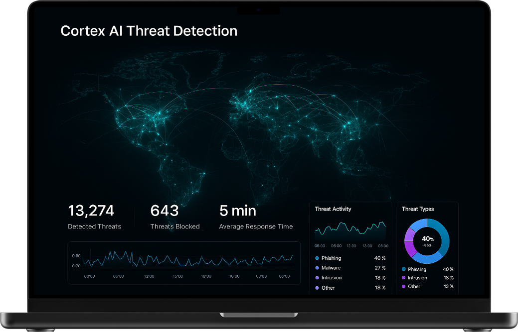 Expert penetration testing, Palo Alto firewall defense, continuous monitoring, and rapid threat response from our 24/7 NOC.